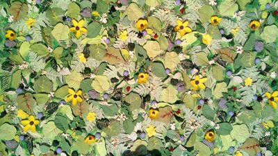Floral collages reconstruct and reinvigorate old synthetic plants and flowers into enchanting landscapes. Like a garden refusing to die, bloom is now permanent, a transformation of plastic, paper, and foam materials into an aesthetic composition.