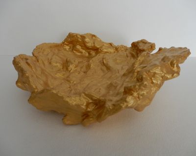 Waste materials such as paper, plastic, foam, etc., are reconstructed into various 3D shapes, painted gold, and then gold leaves are applied.